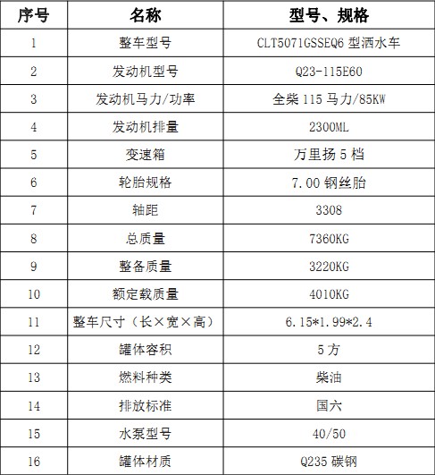 1、整車型號:CLT5071GSSEQ6型灑水車